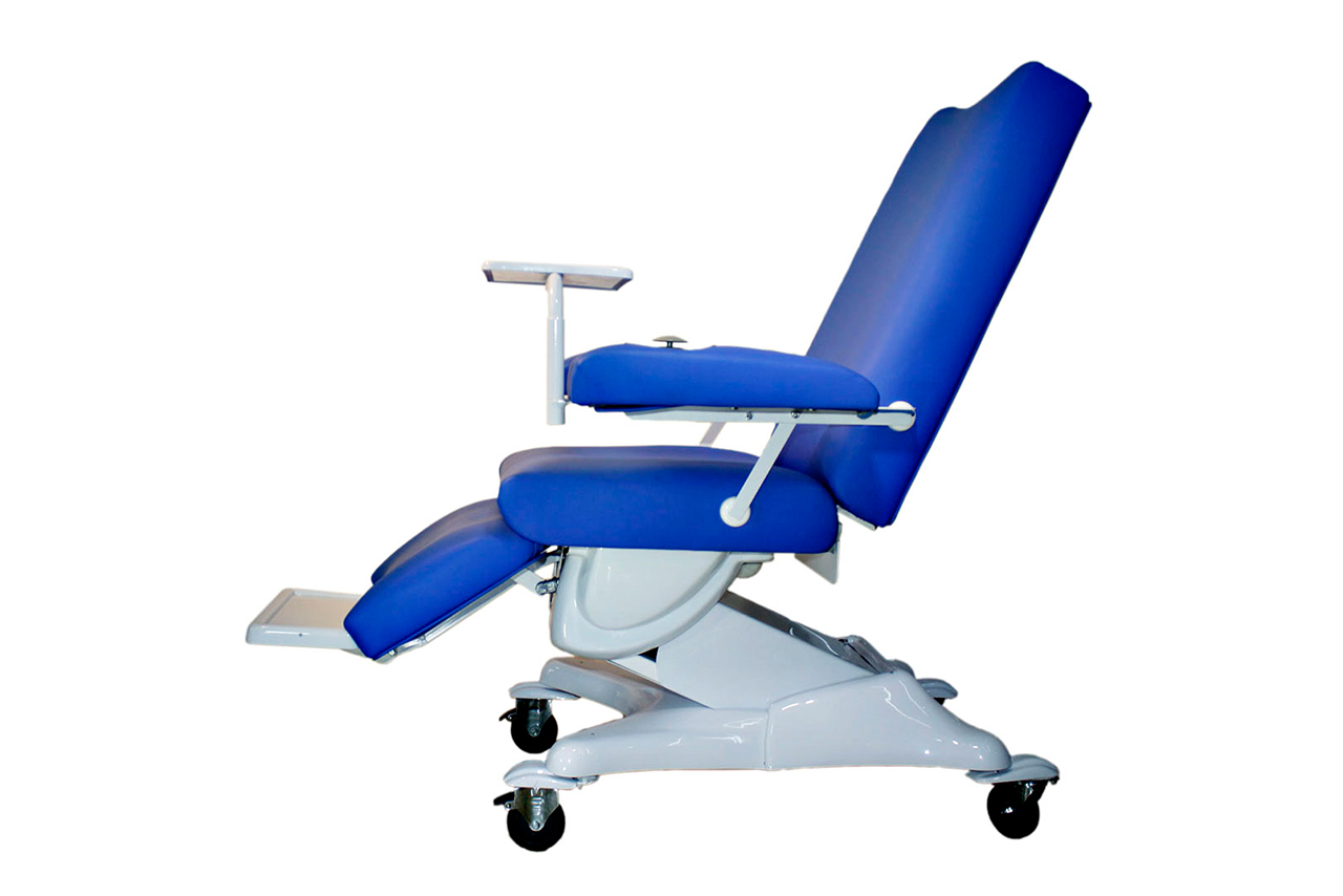 • Espaldar con movimiento por recorrido suave de motor eléctrico o por palanca de 0° a 90°.